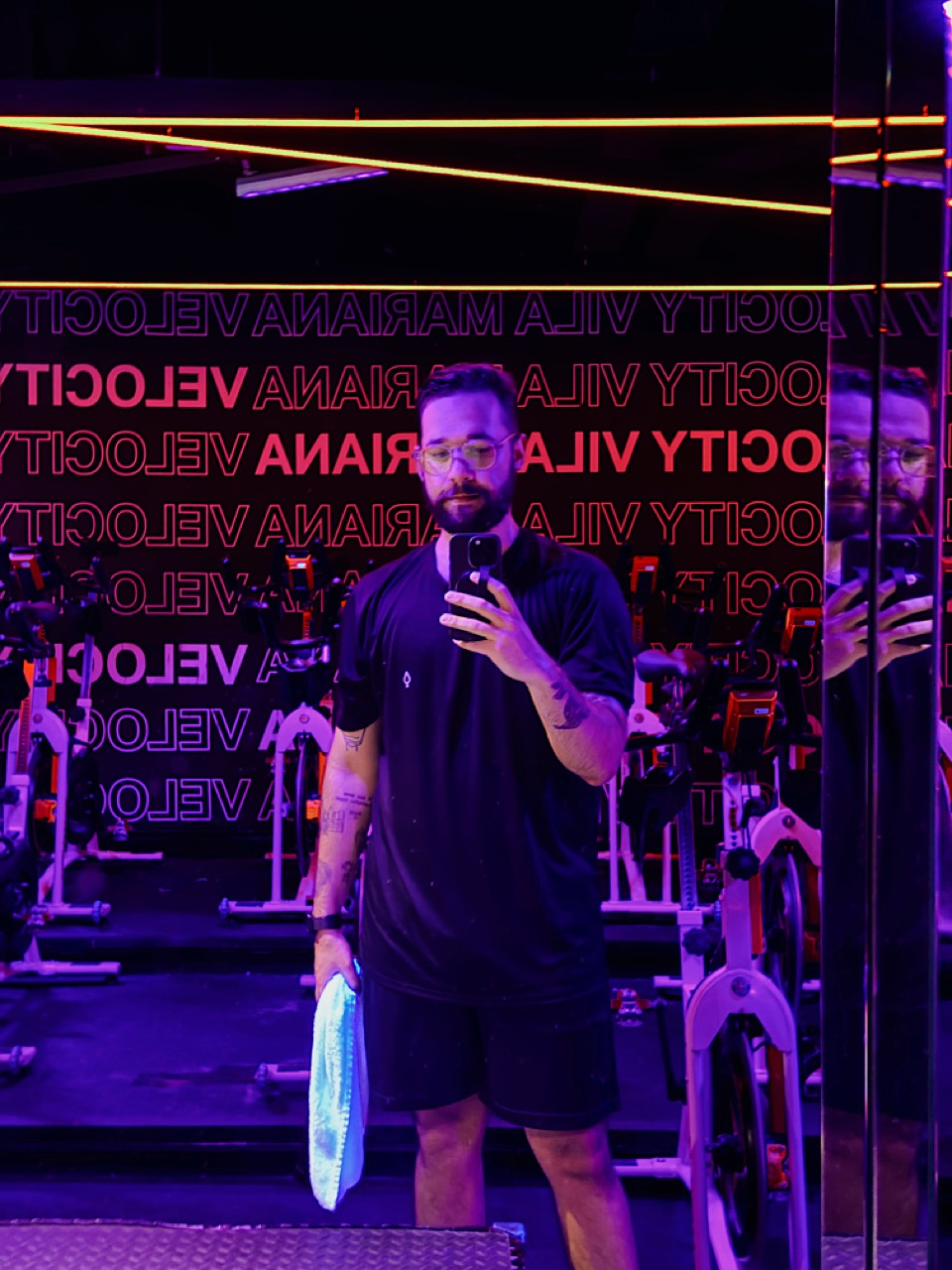 Mas rola pressão para acompanhar a primeira fileira? Nenhuma. Eu pedalava todo errado no começo. Fui prestando atenção aos poucos, usando alguns alunos mais experientes como referência visual e consumindo dicas nas redes dos professores. Aos poucos, você melhora a técnica e consegue fazer os giros rápidos, mesmo que seja inimigo do ritmo.